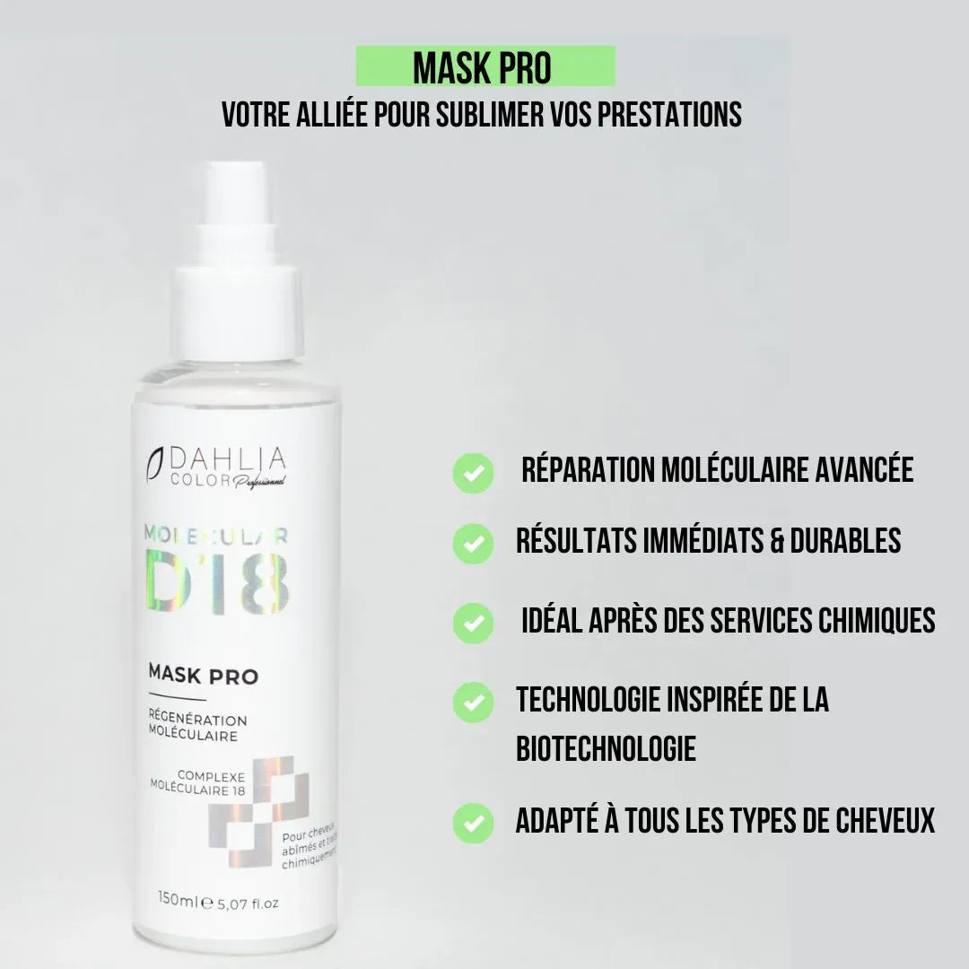 Le Mask Pro D18 est un soin sans rinçage à base de peptides, développé pour réparer les cheveux abîmés en profondeur.